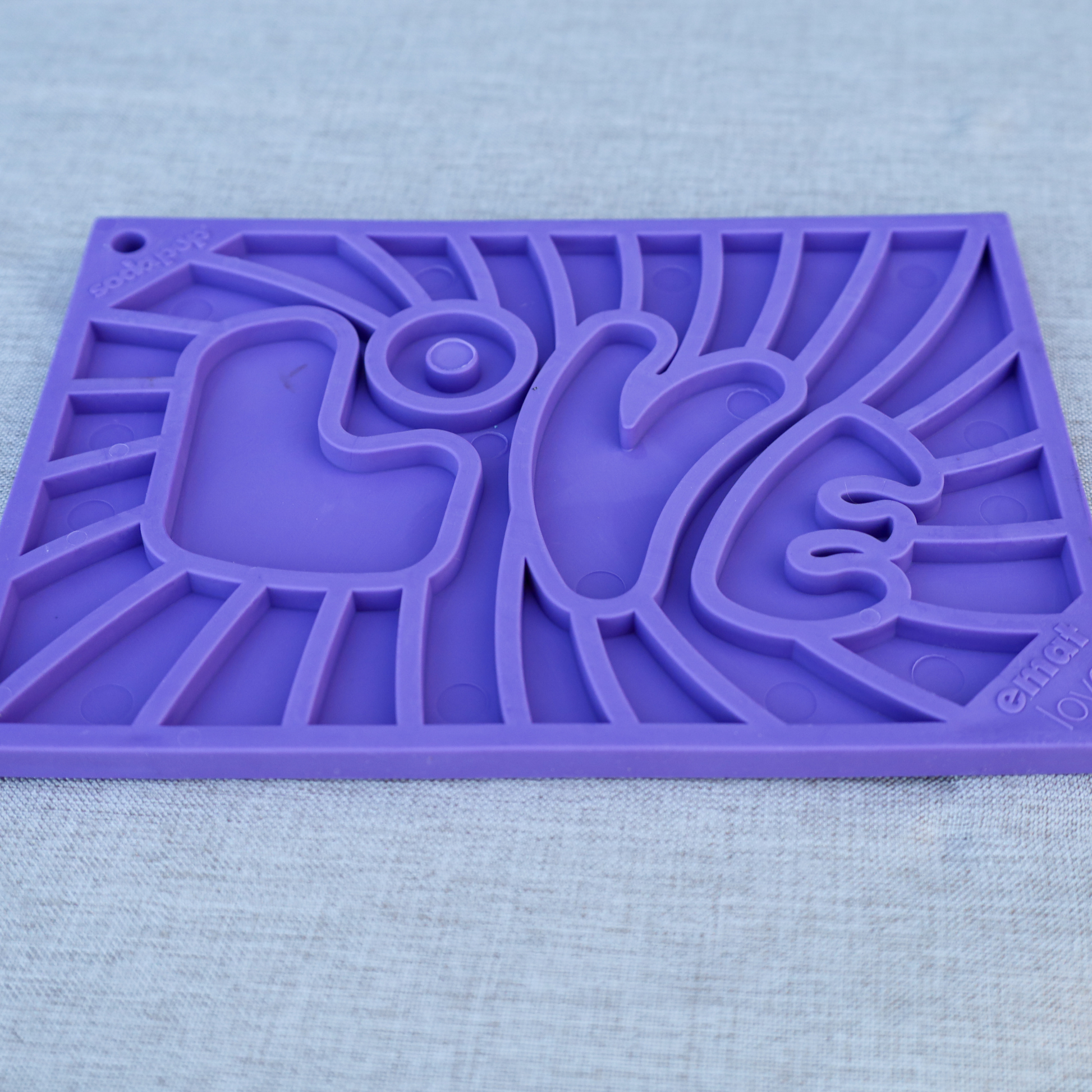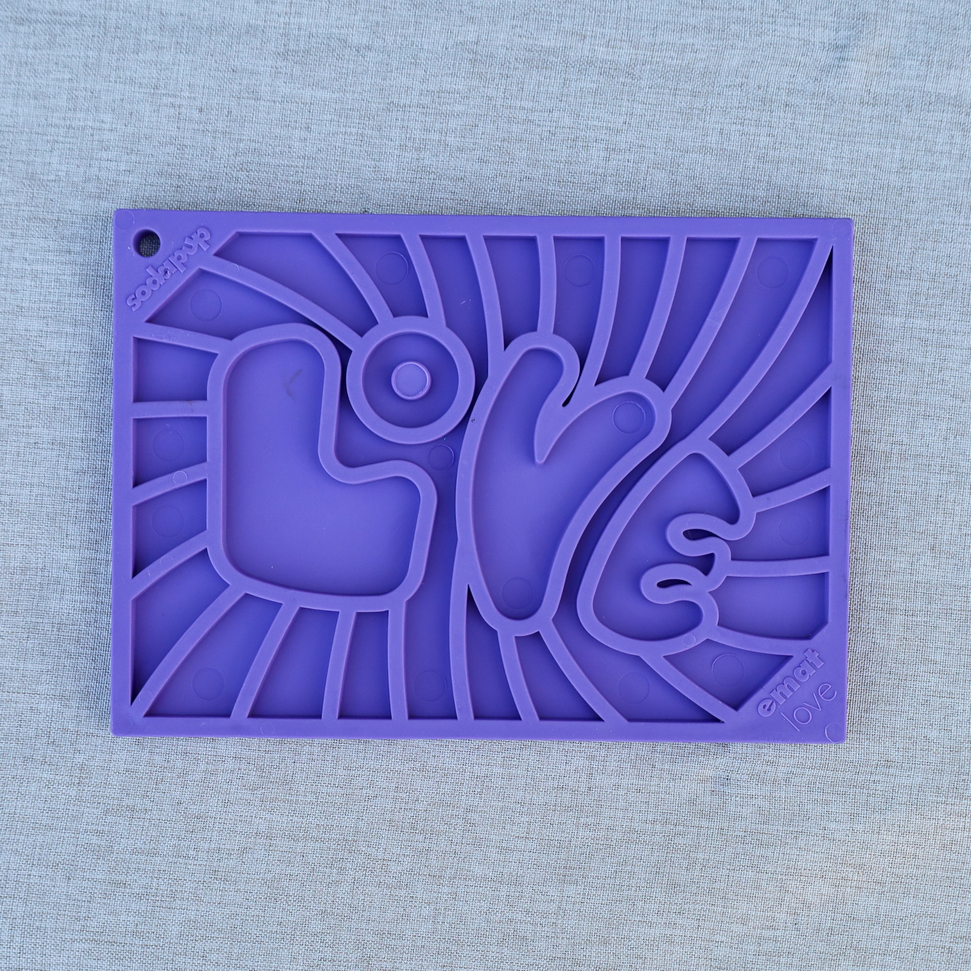 De SodaPup Groovy Love eMat is een compacte verrijkende likmat met een vrolijk retro design vol peace-tekens, hartjes en bloemen. Deze likmat is speciaal ontworpen voor kleine honden, pups en katten en biedt extra uitdaging tijdens het likken dankzij de verschillende vormen, structuren en dieptes. Zo worden snackmomenten niet alleen leuker, maar ook rustgevender en mentaal stimulerender.